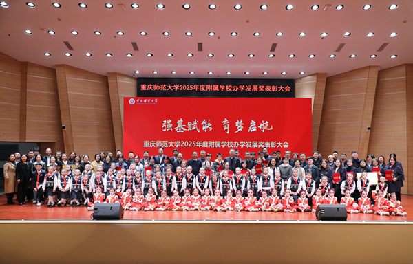 岁序更替,华章日新。1月22日下午,重庆师范大学2025年度附属学校办学发展奖表彰大会在大学城校区举行。来自重庆高新区、沙坪坝区的教育主管部门领导,重庆师范大学校领导,以及各附属学校获奖师生、家长代表齐聚一堂,共同回顾过去一年的耕耘与收获,表彰激励在基础教育一线涌现出的先进集体与优秀个人,凝聚协同育人合力,擘画高质量发展新蓝图。